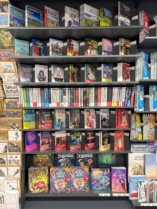Nous proposons également un bel espace librairie et presse, pour parcourir les dernières parutions ou découvrir de nouveaux romans et BD. Pour les enfants (et les grands !), nos rayons jeux et jouets regorgent d’idées ludiques et éducatives, tandis que notre espace cadeaux vous réserve de belles surprises : objets personnalisables, souvenirs de Lozère et créations originales pour marquer chaque occasion.